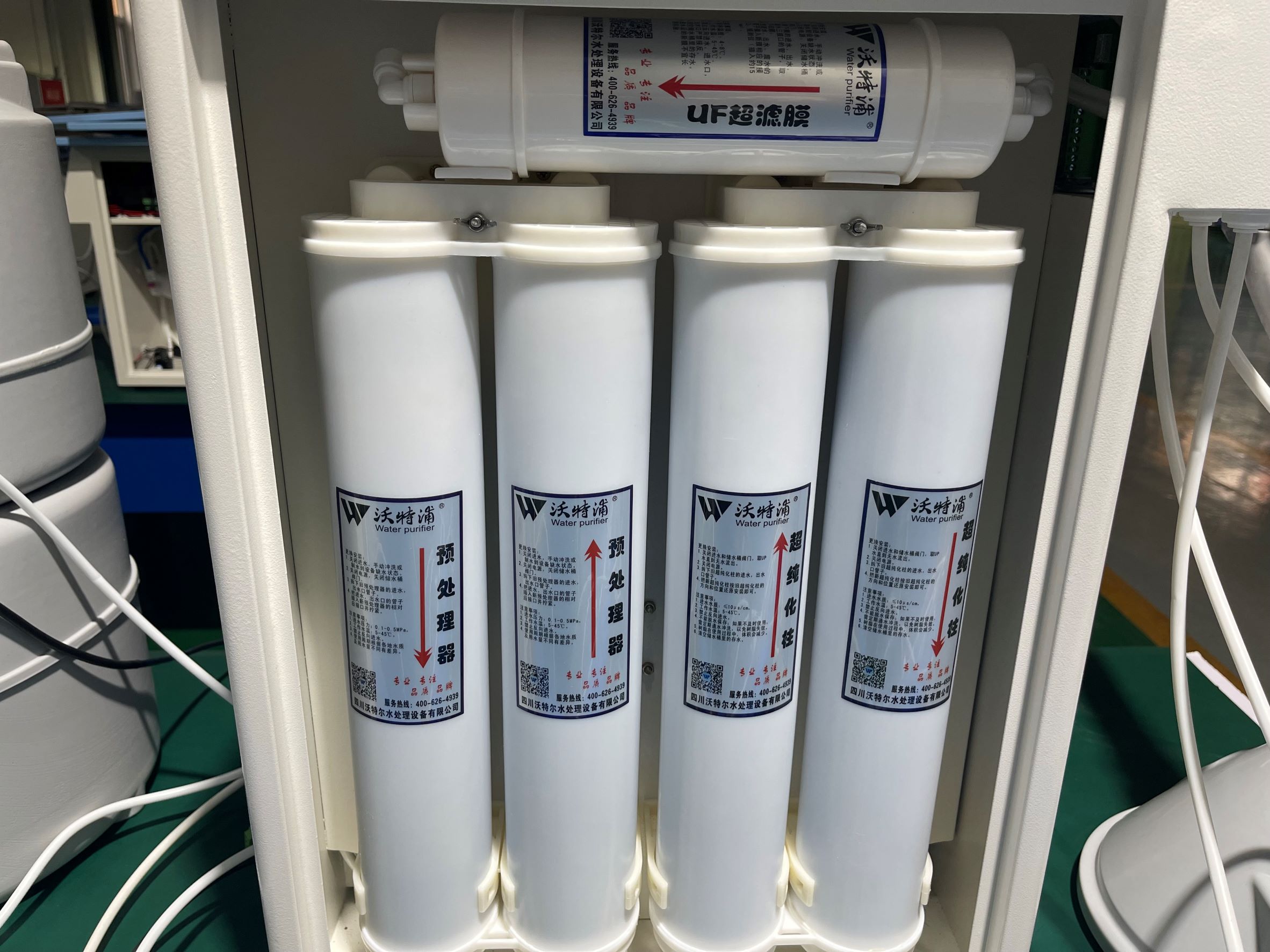 沃特爾水處理采用的過濾工藝:原水->原水增壓泵->預處理系統->精密過濾器->反滲透系統->純化水箱->純水泵->微孔過濾器->用水點EDI+反滲透方式: